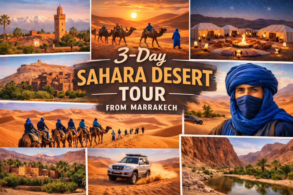 Best 3-day desert tour from Marrakech is for travelers with limited time. Cross High Atlas Mountains to Merzouga dunes, stopping at Ait Ben Haddou, Dades Valley, and Todra Gorges. Includes camel trek and overnight in desert camp under stars.