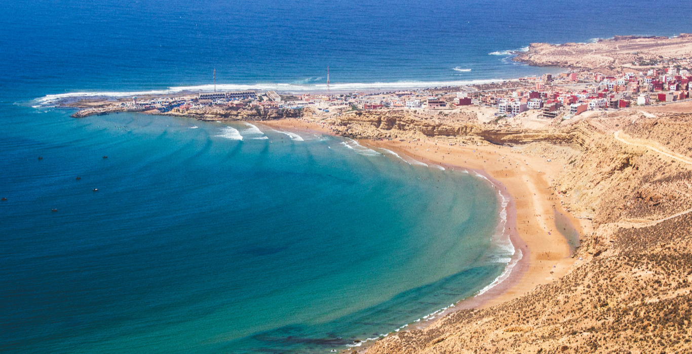Continue your coastal exploration with a scenic drive south along the Atlantic. Revel in panoramic ocean views and stop for photos at dramatic cliffs and fishing villages. Arrive in Agadir, a modern resort city nestled beneath a historic hilltop fortress. Take a leisurely walk along “la côte d’Agadir,” relax on the sandy beach, and explore Souk El Had—one of Morocco’s largest markets—known for leather goods, spices, and crafts. Visit Agadir Oufella for panoramic views of the bay, then head to Taghazout, a laid-back surf village, for sunset drinks at a local restaurant. Overnight in Agadir.
