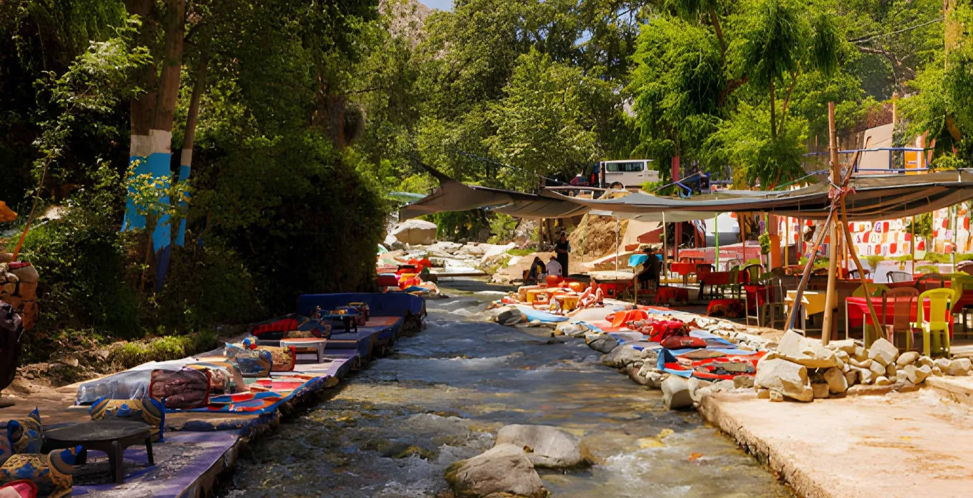 Just 45 minutes from the heat and hustle of Marrakech, the Ourika Valley unfolds like a hidden Eden—lush, tranquil, and steeped in Amazigh (Berber) tradition. Nestled in the foothills of the High Atlas Mountains, this verdant valley is home to the famed Setti Fatma Waterfalls, a series of seven cascading tiers fed by glacial snowmelt, surrounded by terraced farms, stone villages, and panoramic mountain vistas.